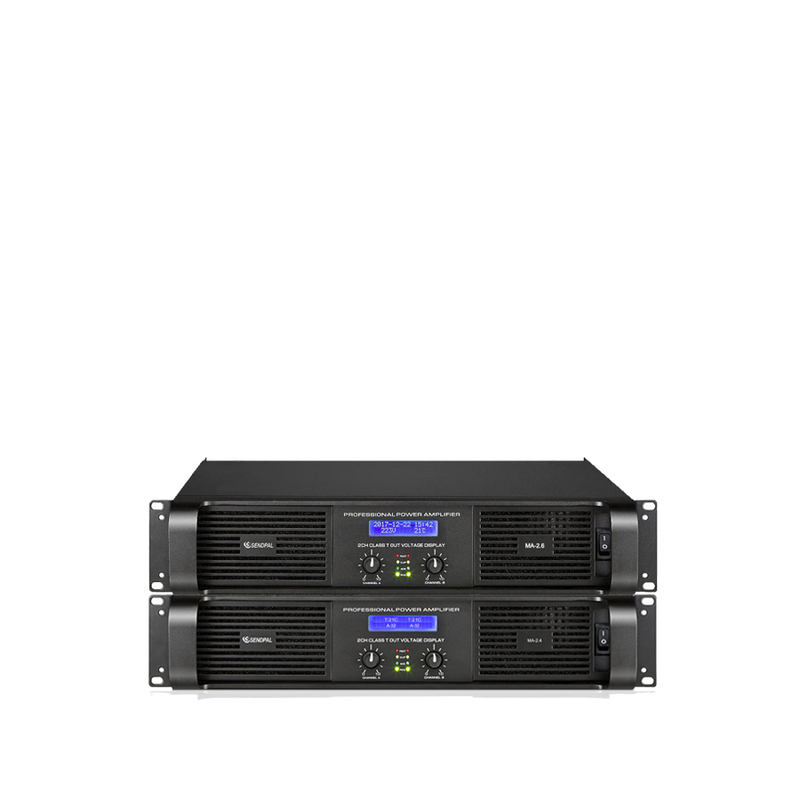MA系列功率放大器设计了先进的峰值型压缩限幅电路,降低输出过大时的失真,保护用户昂贵的音箱系统免受功放输出过大,波形削顶而造成的损坏。设置了先进的开机、关机防护电路,短路保护电路,可以增加整个音响系统的安全性及可靠性。功放内设计了先进的温控无级风冷散热系统,更有可靠的超温保护电路.功放还设计了次音、超音频、直流、过载等先进保护电路来保证整机的安全,令用户使用起来更加安全放心。采用世界先进的线性H类电路、2U机箱设计,输出低失真、低噪音、大功率、宽频响、高可靠性,向用户提供优秀的音响效果。